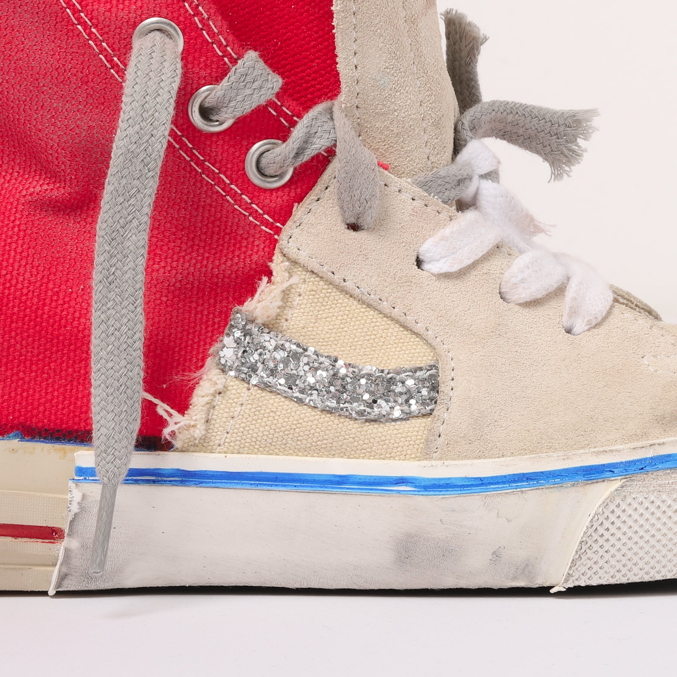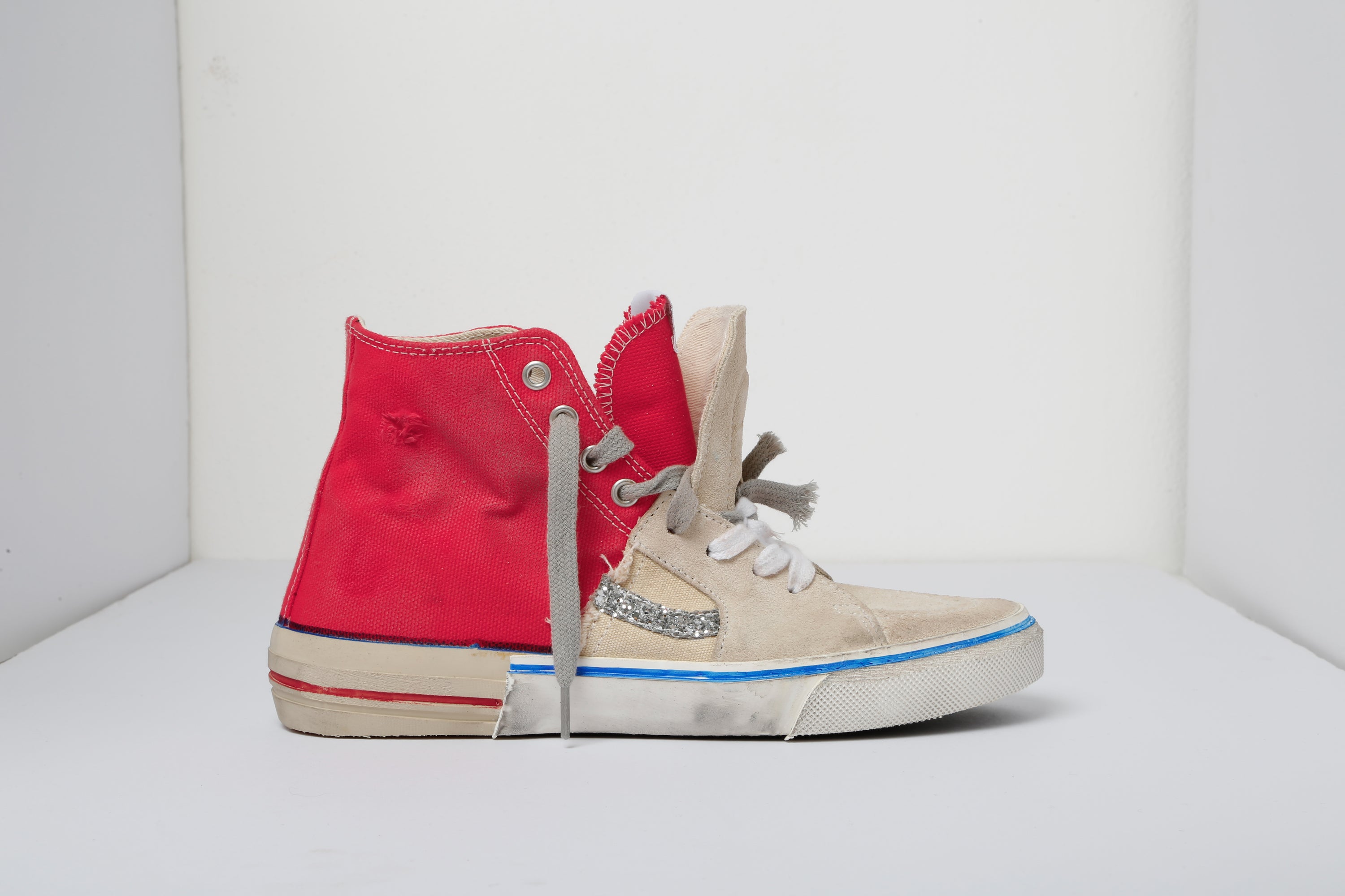 Elevate any look with the CS004OR CALY STAR. This unique and stylish shoe combines Chuck 70 design with sk8 for a one-of-a-kind look. Crafted with a mix of denim, suede, and leather, these shoes come with bicolour laces for versatility and comfort. Upgrade your style game today.