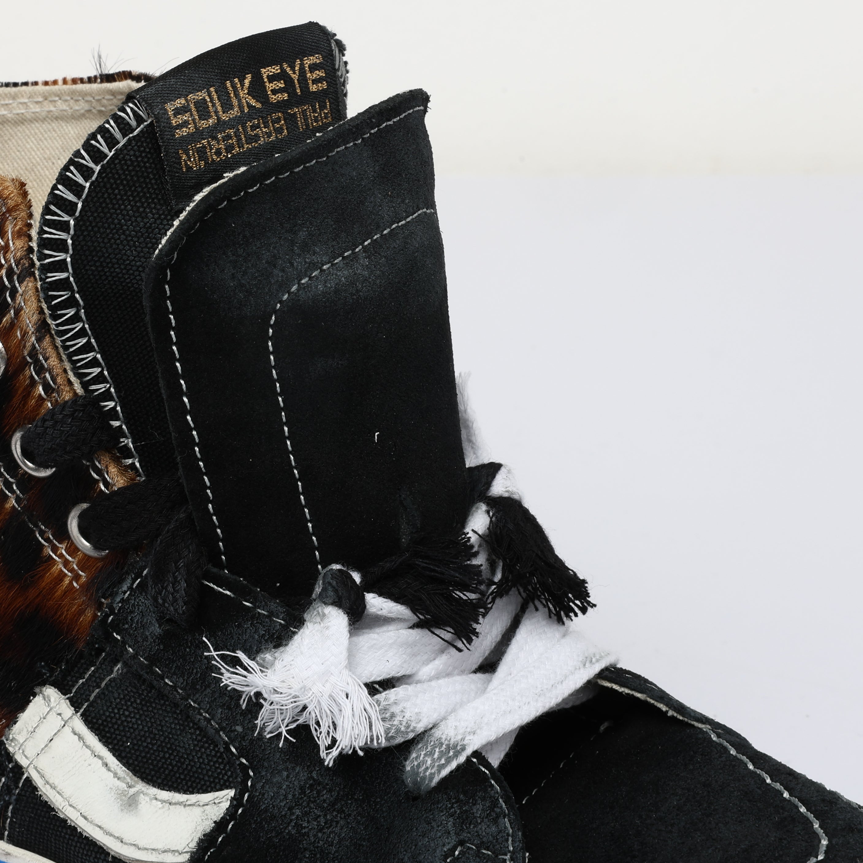 The CS006BA Caly Star merges the iconic Chuck 70 design with the sk8 high and eco-friendly leopard fur for a stylish option. Its bicolour laces add a unique touch to these versatile sneakers. Elevate your look with this one-of-a-kind pair.