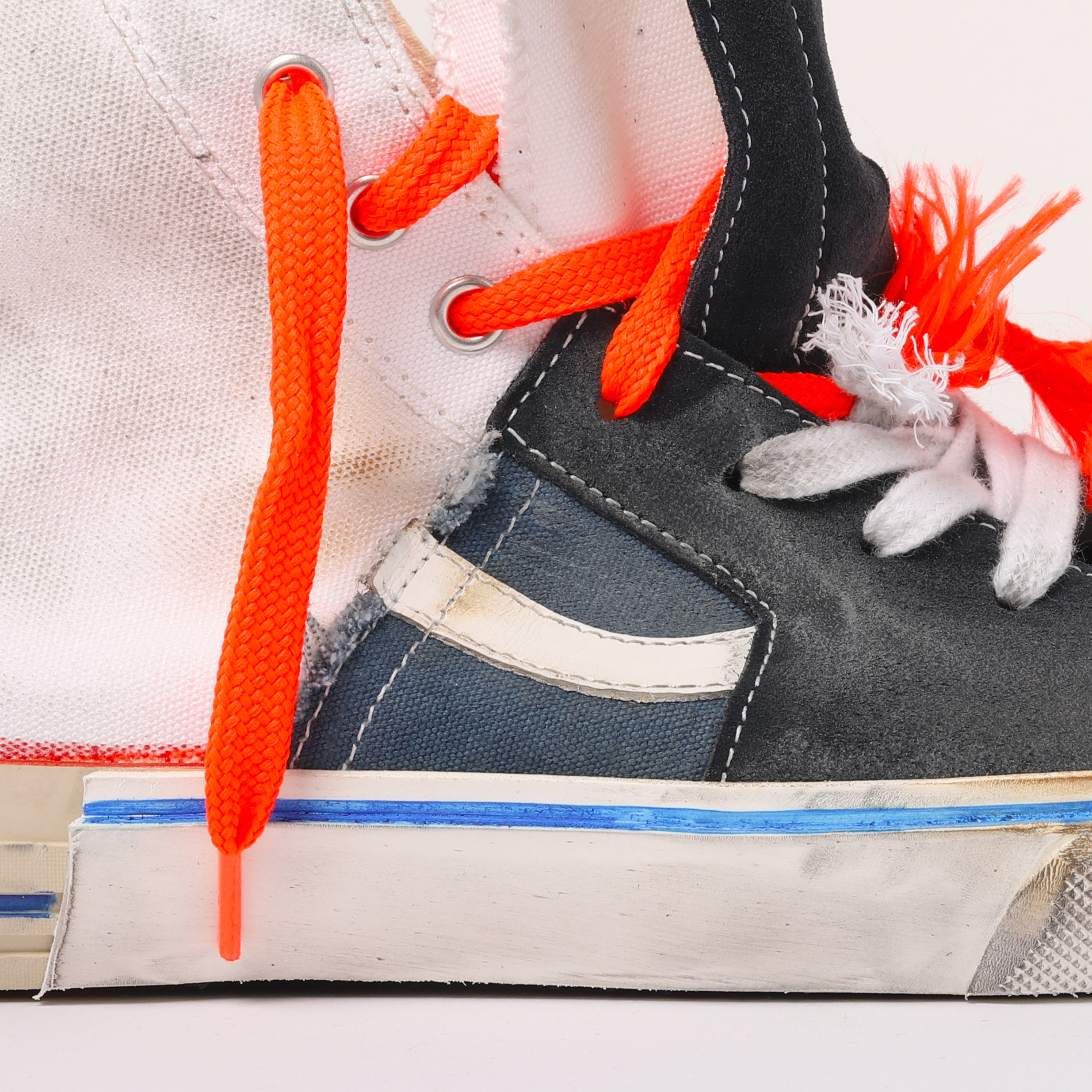 Elevate your sneaker game with the CS001NW CALY STAR. Combining the classic Chuck 70 design with a sk8 high silhouette, this sneaker features a mix of canvas, suede, and leather materials. Complete with bicolour laces, these sneakers are perfect for adding a touch of style to your casual look.